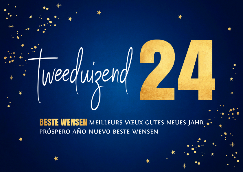 Zakelijke nieuwjaarskaart blauw 2024 goudlook | Kaartje2go