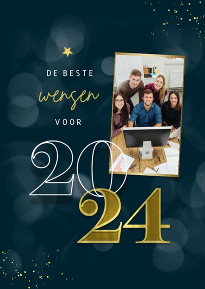 Zakelijke nieuwjaarskaart blauw 2024 goudlook | Kaartje2go