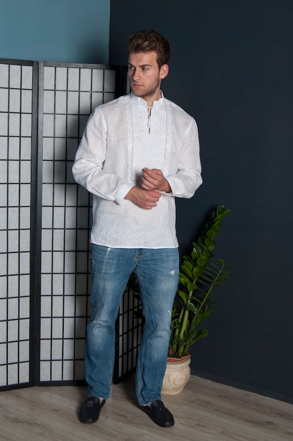 2024 Wit op wit Oekraïens shirt voor heren. Geborduurd Etsy België