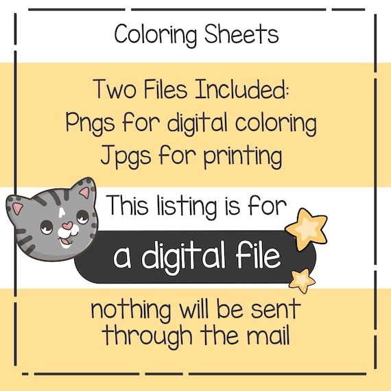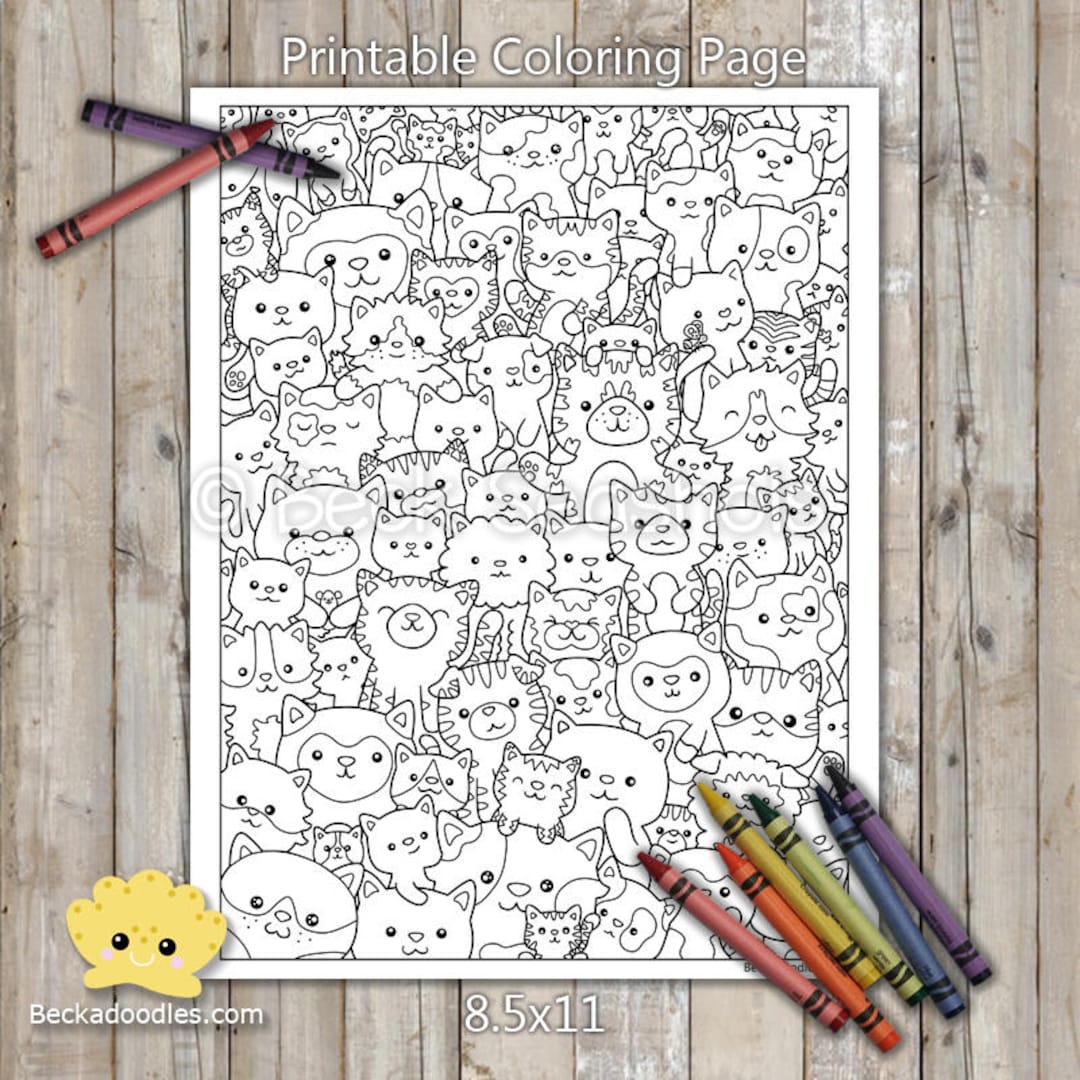 PRINTABLE Cute Kitty Cats Coloring Page Hand drawn (Instant